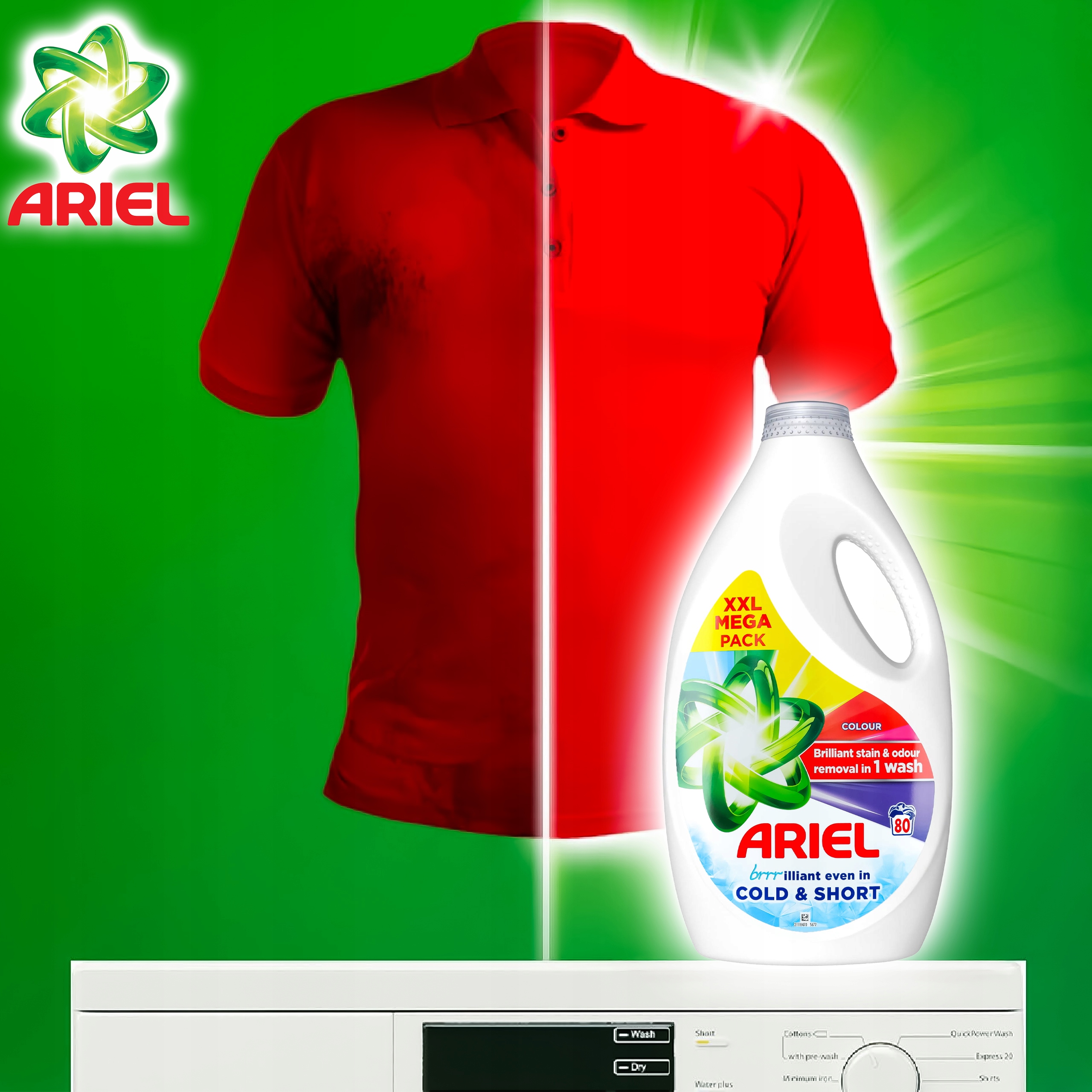 Formuła Ariel Colour Cold&Short została opracowana z myślą o nowoczesnym, energooszczędnym praniu. Żel działa efektywnie nawet w zimnej wodzie – od 20°C – co oznacza, że możesz prać skutecznie, jednocześnie oszczędzając energię i chroniąc delikatne tkaniny przed zbyt wysoką temperaturą. To idealne rozwiązanie dla osób, które chcą połączyć dbałość o ubrania z troską o środowisko.